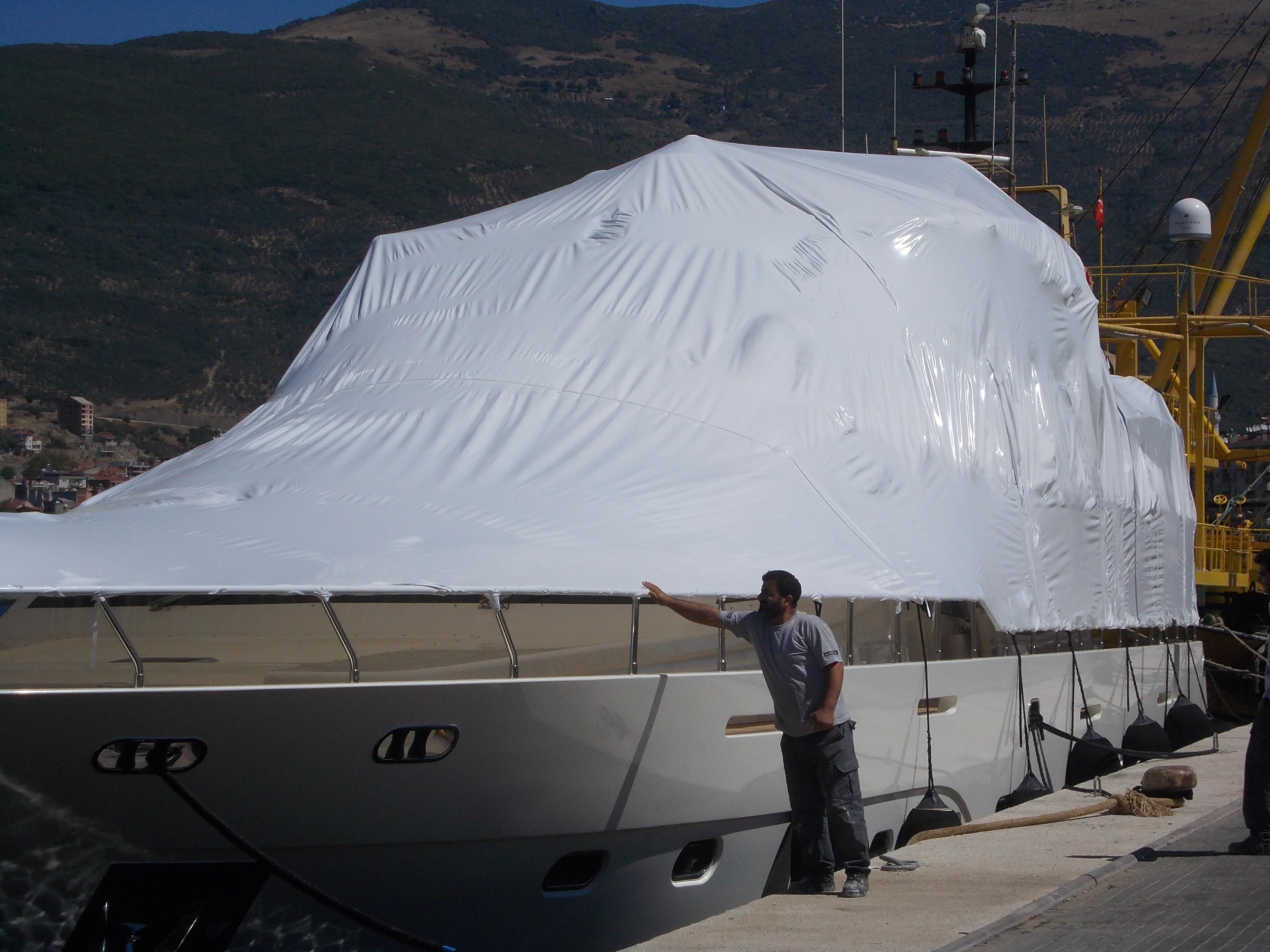 Çevresel Koruma: Shrink kaplama, teknenizin etrafında tam bir bariyer oluşturarak boya, toz ve diğer partiküllerin çevreye yayılmasını engeller. Bu sayede, marinadaki diğer tekneler ve çevre korunmuş olur.